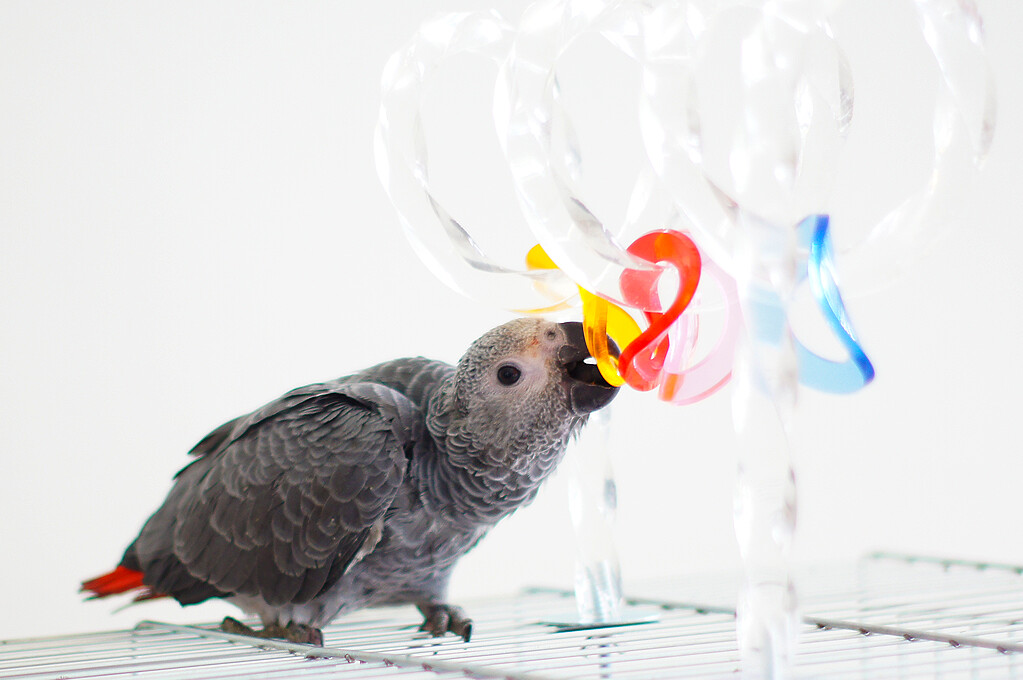 Jyrsiminen on papukaijoille hyvin tärkeää, ja papukaijoille parhaita leluja ovatkin tuhottavat lelut. Kuva: Mia Niemi